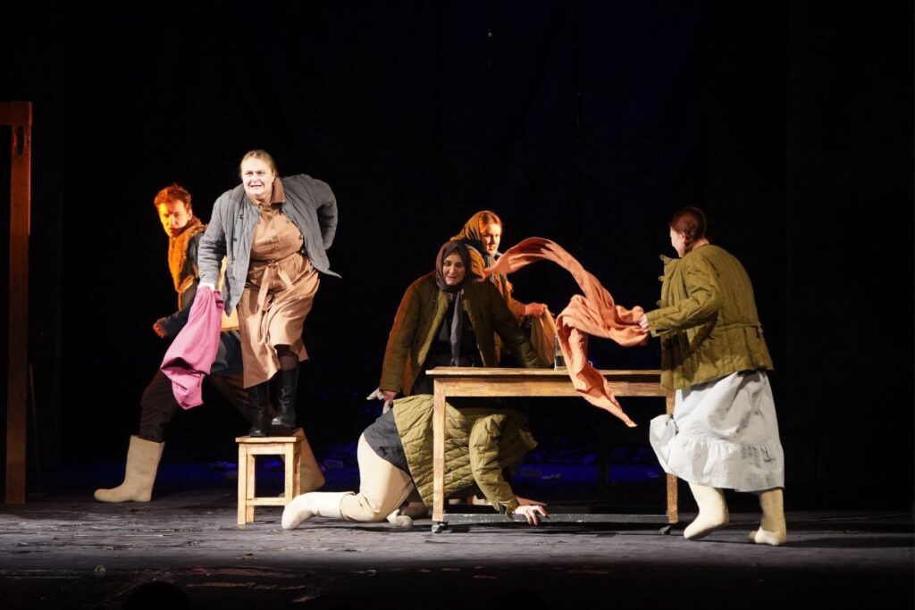 Рэжысёрка Каміля Хусаінава і ўся творчая каманда стварылі неверагодна шчыльны, энергетычна магутны тэатральны твор паводле культавай п’есы Андрэя Макаёнка. Гісторыя сям’і пастуха Цярэшкі ў акупаванай нямецкімі войскамі беларускай вёсцы 1942 года паўстала перад гледачамі не як старонка з падручніка, а як жывы, пульсуючы боль. Тут перамяшалася ўсё: грубы народны гумар і трагічная цішыня, любоў і страх, веліч духу і чалавечая бяссільнасьць перад абставінамі.
