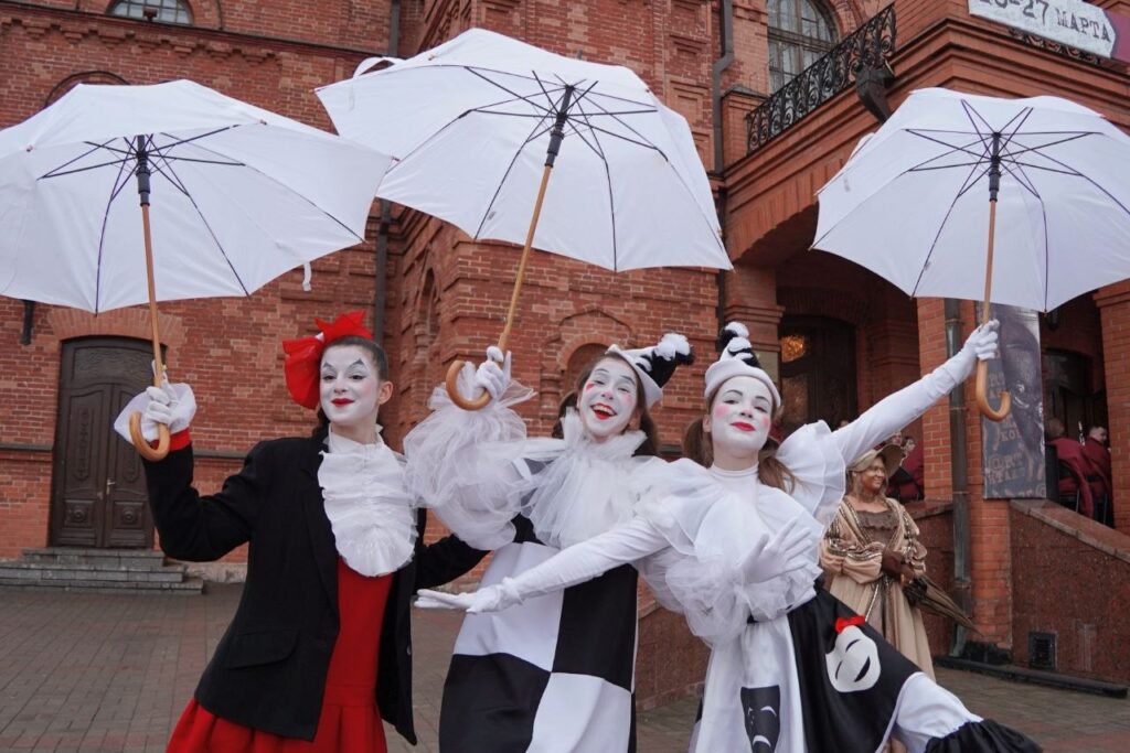 Ходулисты, мимы, ожившие статуи, живой звук и артисты — даже при пасмурном небе и лёгком дожде они превратили пространство в настоящий праздник.