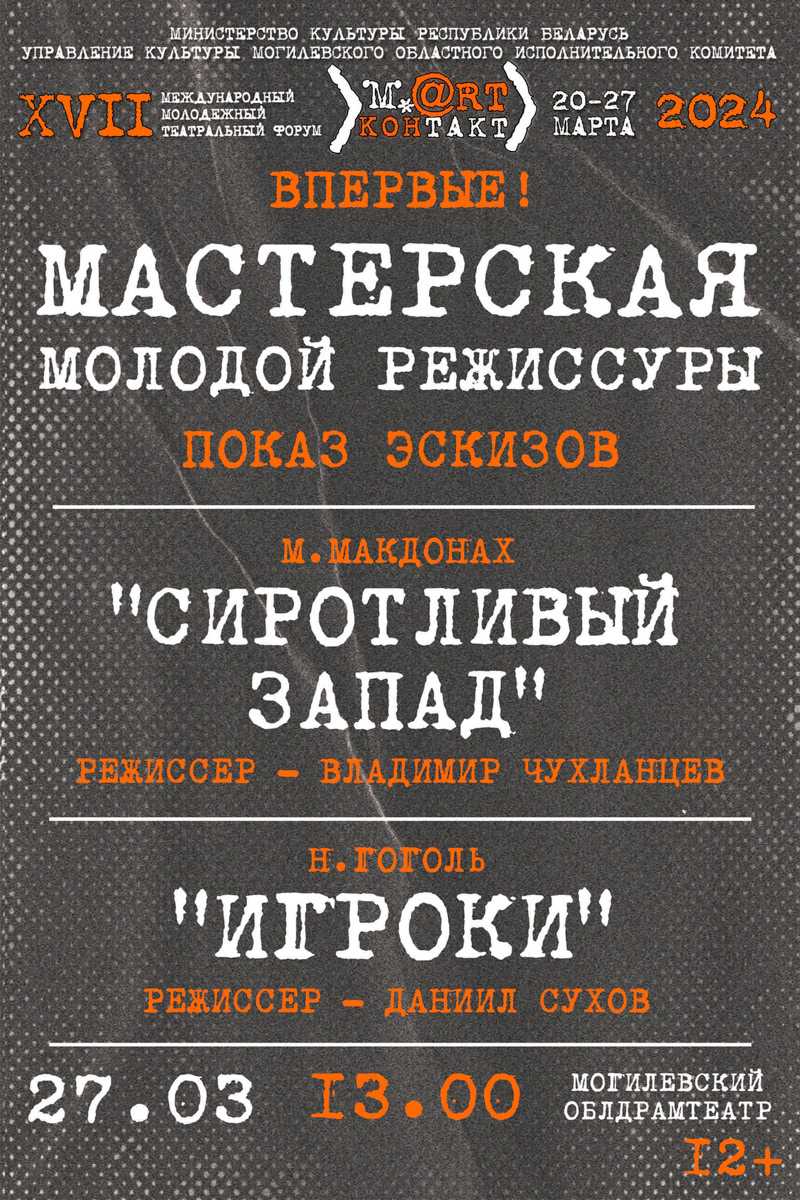 27 марта в рамках XVII Международного молодежного театрального форума "МартКонтакт" состоится показ:...